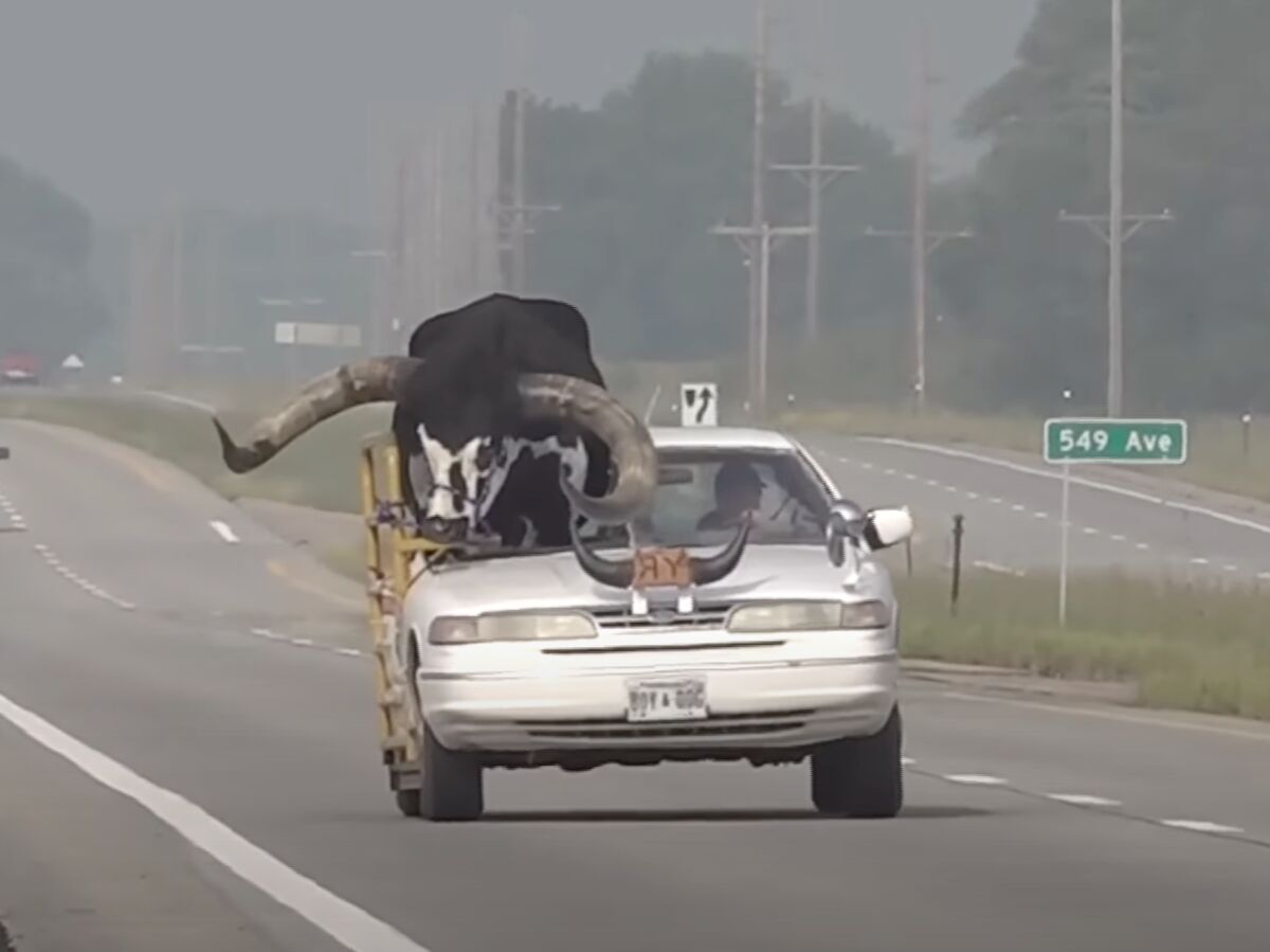 Il modifie sa voiture pour transporter son taureau pesant 1 tonne sur le siège passager, la police l’arrête