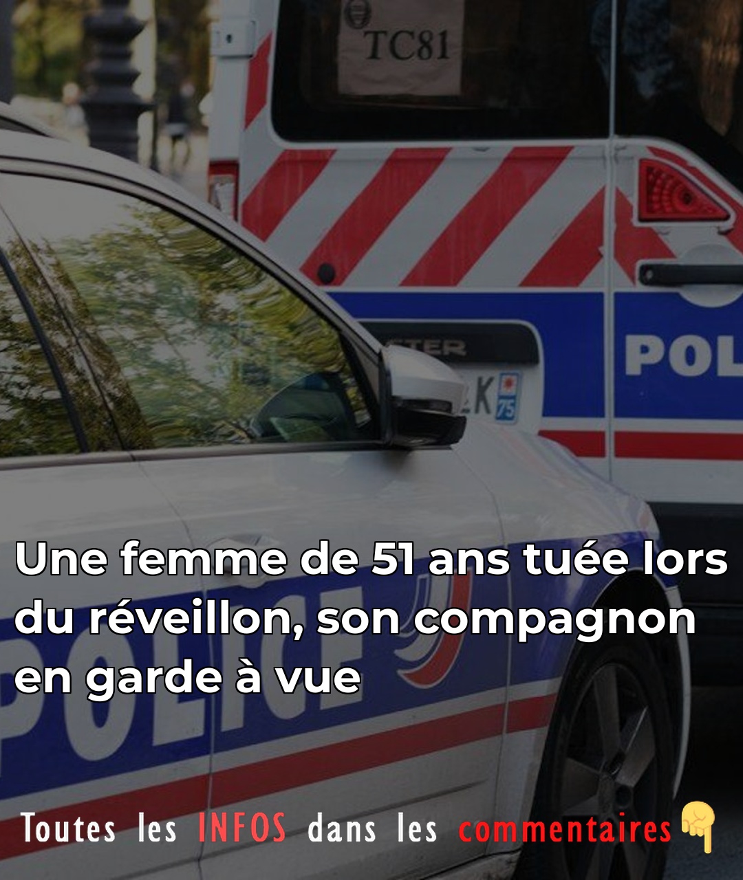 Une femme de 51 ans tuée lors du réveillon, son compagnon en garde à vue
