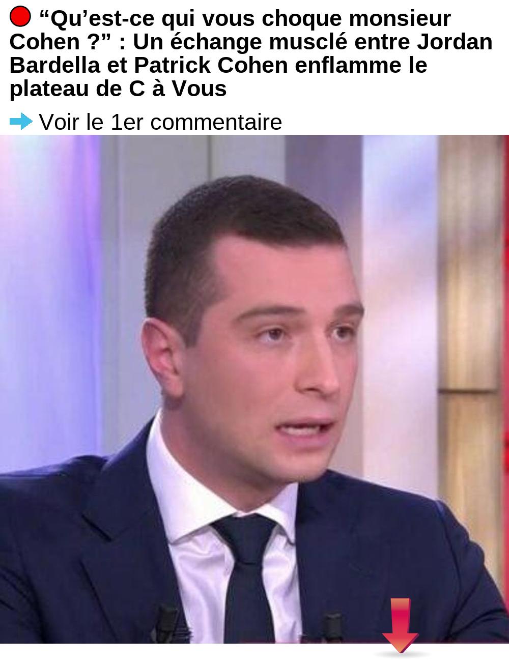 “Qu’est-ce qui vous choque monsieur Cohen ?” : Un échange musclé entre Jordan Bardella et Patrick Cohen enflamme le plateau de C à Vous