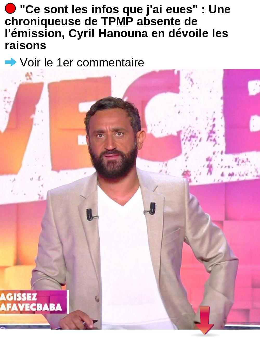 “Ce sont les infos que j’ai eues” : Une chroniqueuse de TPMP absente de l’émission, Cyril Hanouna en dévoile les raisons