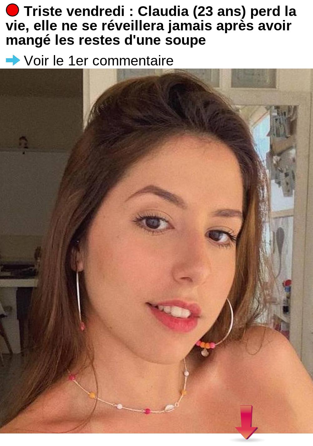 Triste vendredi : Claudia (23 ans) perd la vie, elle ne se réveillera jamais après avoir mangé les restes d’une soupe