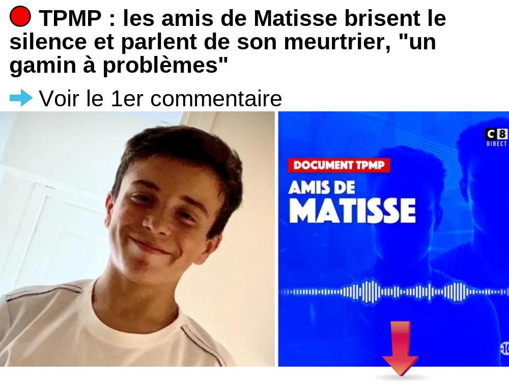 TPMP : les amis de Matisse brisent le silence et parlent de son meurtrier, “un gamin à problèmes”