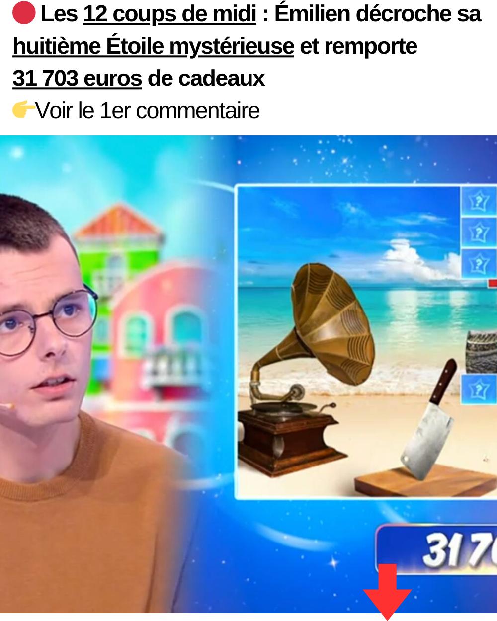 Les 12 coups de midi : Émilien décroche sa huitième Étoile mystérieuse et remporte 31 703 euros de cadeaux