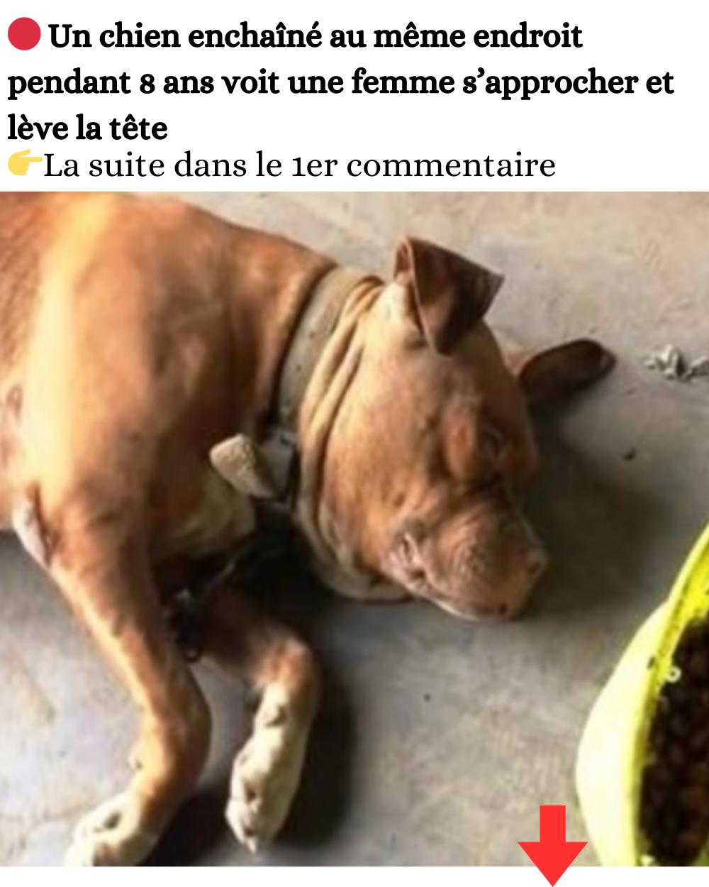 Un chien enchaîné au même endroit pendant 8 ans voit une femme s’approcher et lève la tête