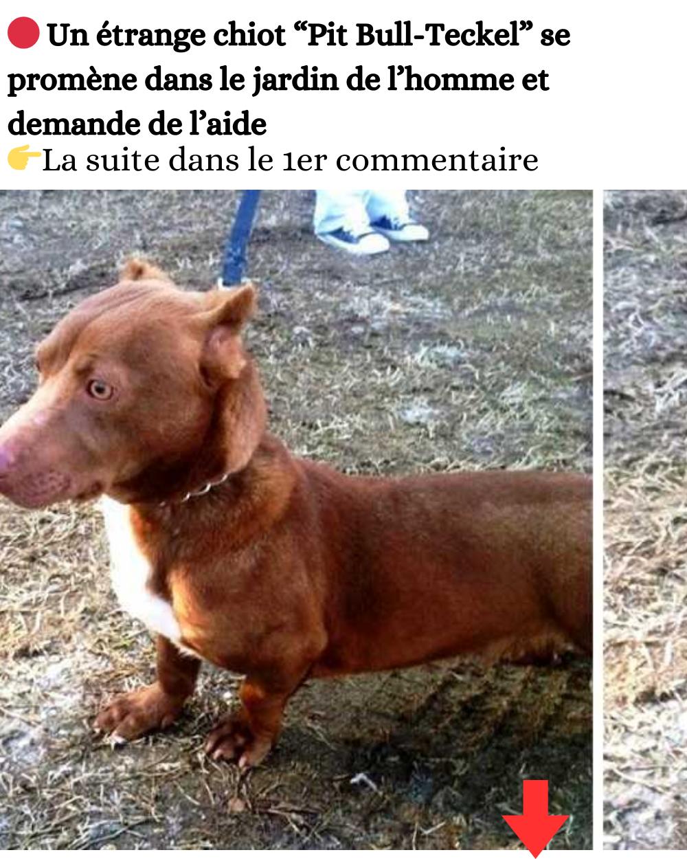 Un étrange chiot “Pit Bull-Teckel” se promène dans le jardin de l’homme et demande de l’aide