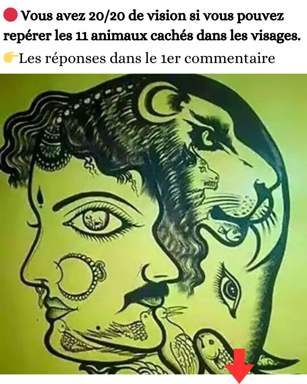 Vous avez 20/20 de vision si vous pouvez repérer les 11 animaux cachés dans les visages.